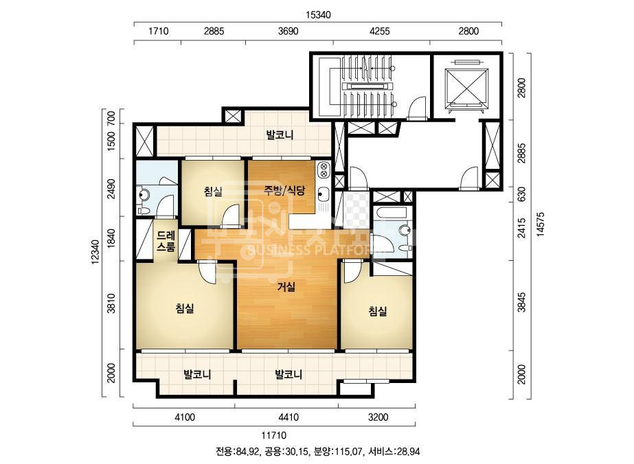 ✅️ 면적 : 공급 115.07㎡(34평)/전용 84.92㎡(25평)